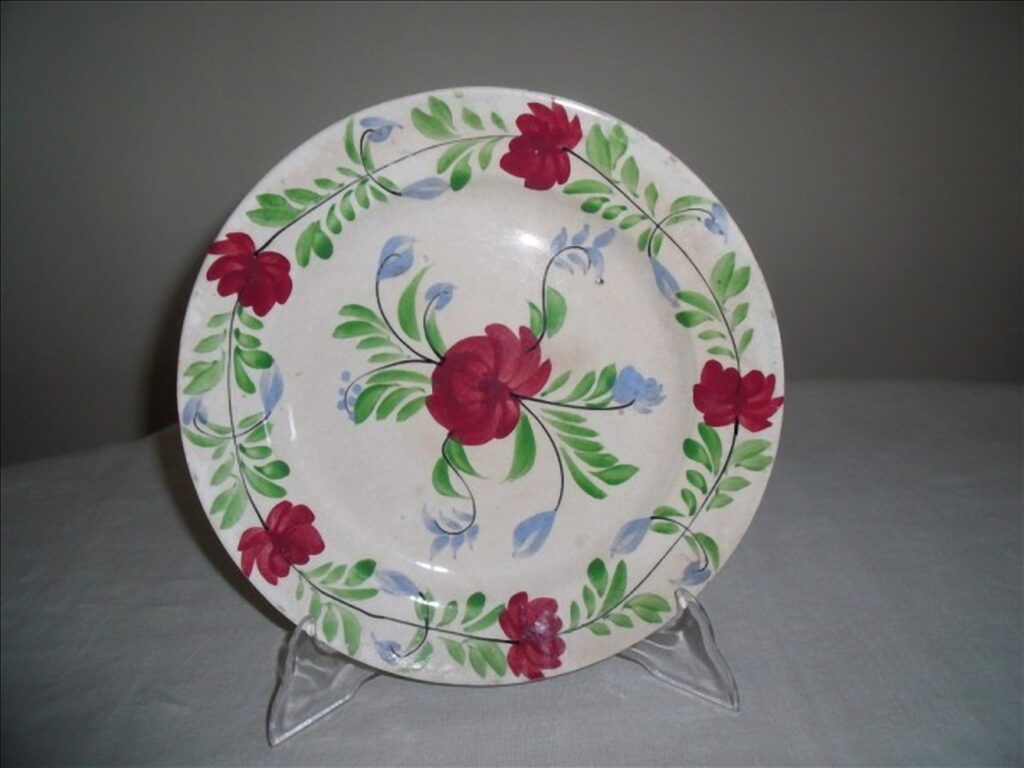 Plato llano, decorado a mano con pincel. Tercera época (1845-1862). Marca impresa. Loza fina de pedernal. Medidas: 3,5×24 cms. *