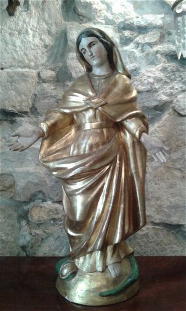 Talla de Virgen en madera con policromía original. Época: Siglo XVIII. Medidas: 50×30.