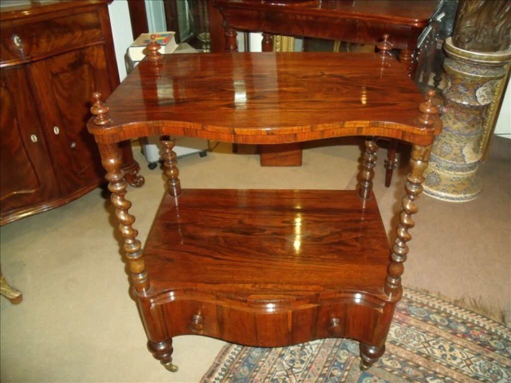 Whatnot en palosanto con dos baldas y un cajón en caoba. Inglaterra. Época: C-1830. Medidas: 1,20 x 64 x 40 cm